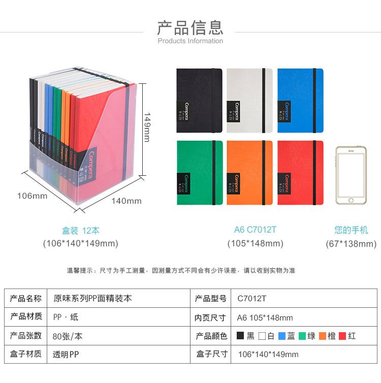 齐心(COMIX)C7012T Compera 原味系列 精装本套装 A6 12本6色装