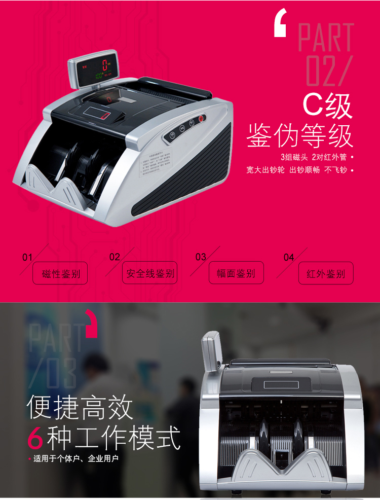 齐心(COMIX)JBYD-2166C 智能红外点钞机 验钞机 双屏 3对磁头2对红外