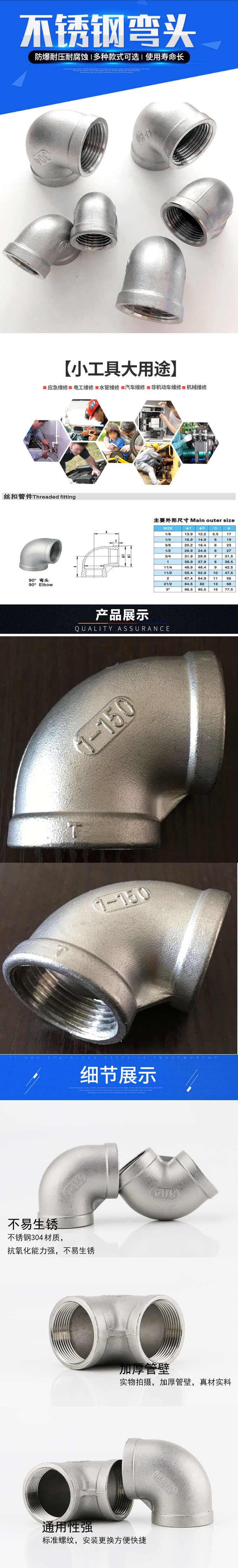 冰禹 BYQ-605 304不锈钢弯头 DN50 2寸 (单位:个)