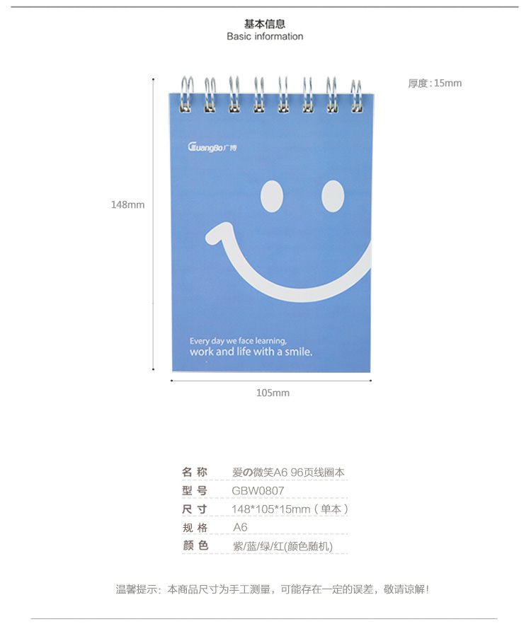 广博 爱的微笑A6上翻线圈本 GBW0807