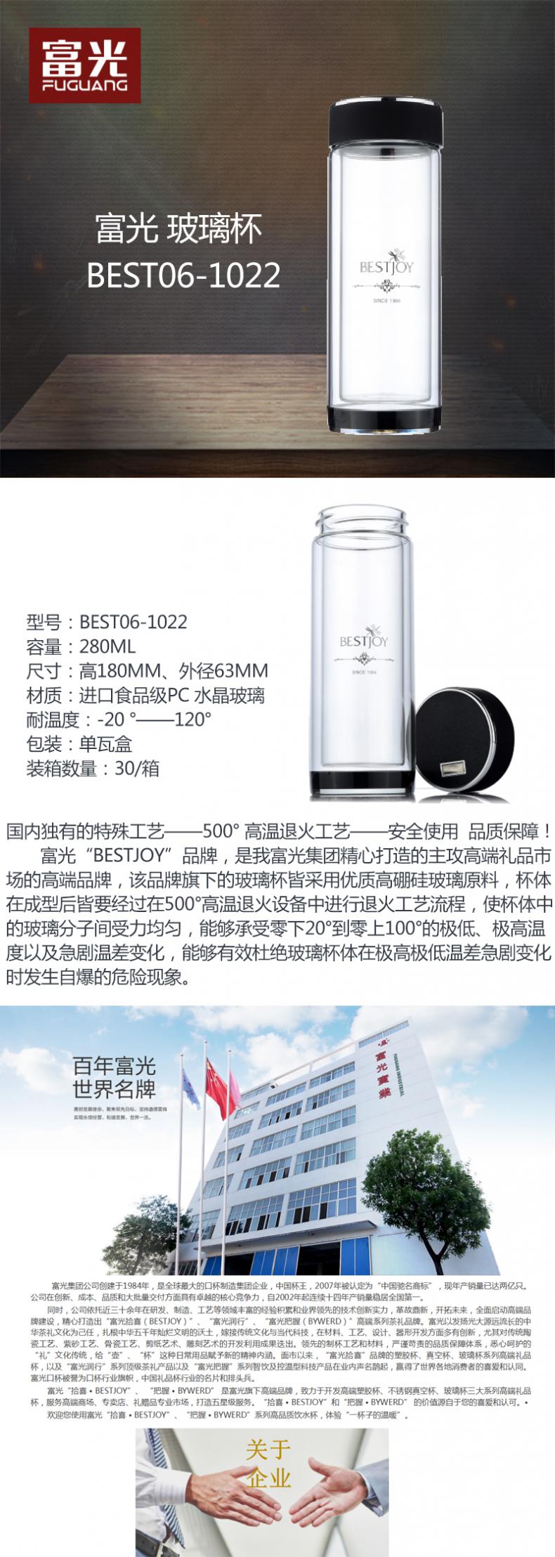 富光 玻璃杯 BEST06-1022 280ml 黑色