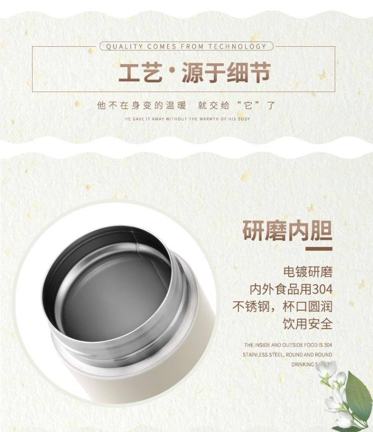 材质 杯体304#18-8不锈钢,杯盖食品级PP+食品级硅胶