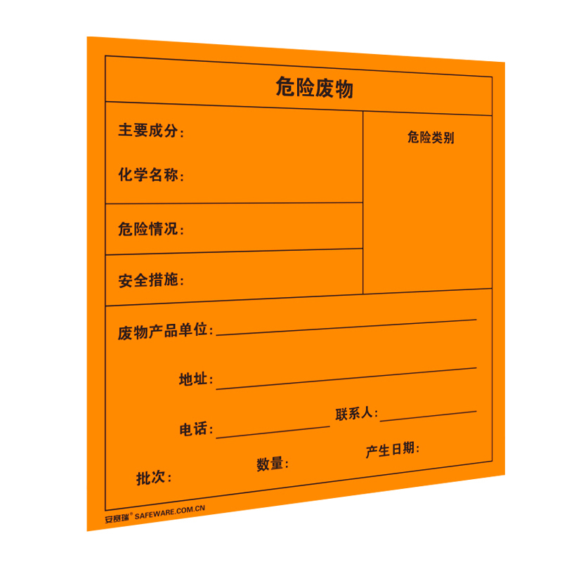 安赛瑞 39670 不干胶 环境保护标识标签 20*20cm 20片/包 (单位:包) 危险废物