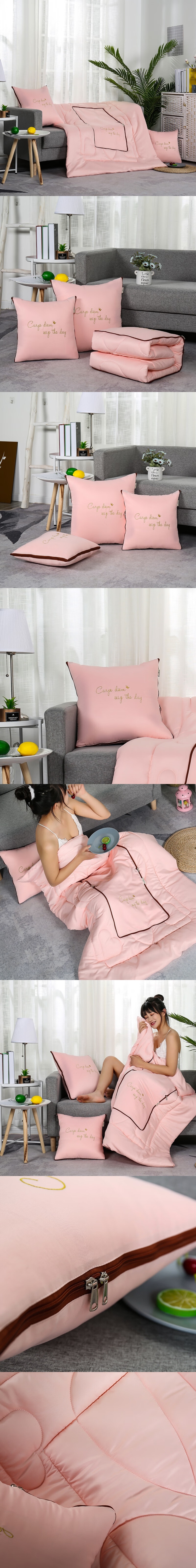 约克罗兰(YEKEROLAN) 水洗真丝 轻奢刺绣抱枕被 110*150cm(单位:条) 淡粉