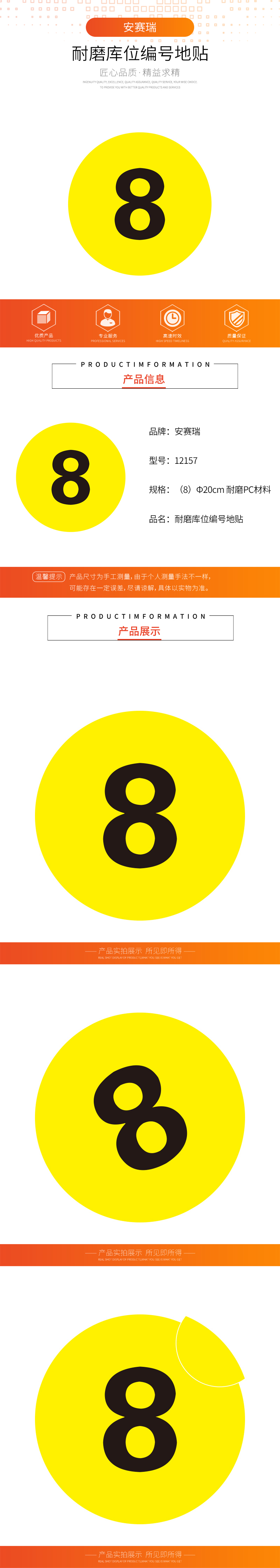 安赛瑞 12157 耐磨PC材料 耐磨库位编号地贴 Φ20cm (单位:个) 8