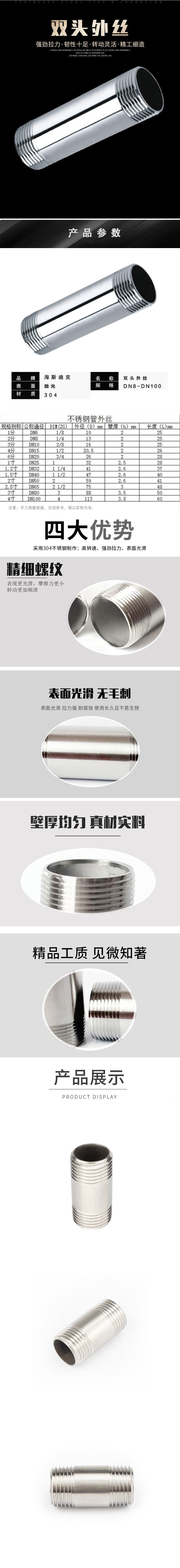 商品名称 304不锈钢双头外丝