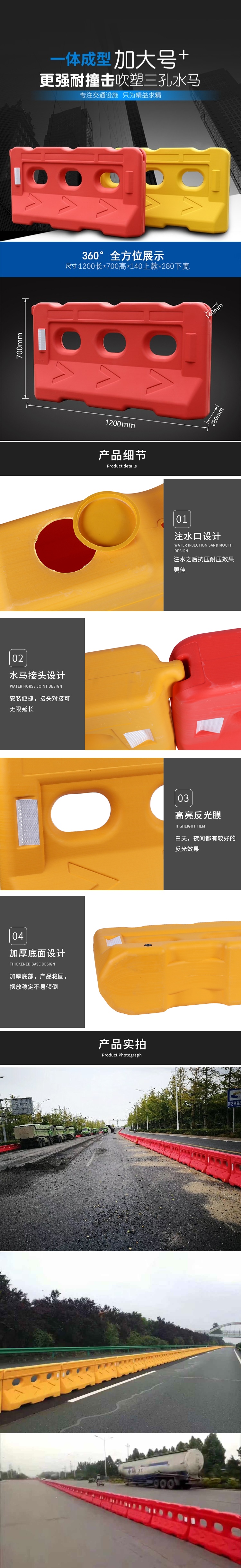 工品库(GONGPINKU) 滚塑 三孔水马隔离墩 5.5kg(单位:个) 红色