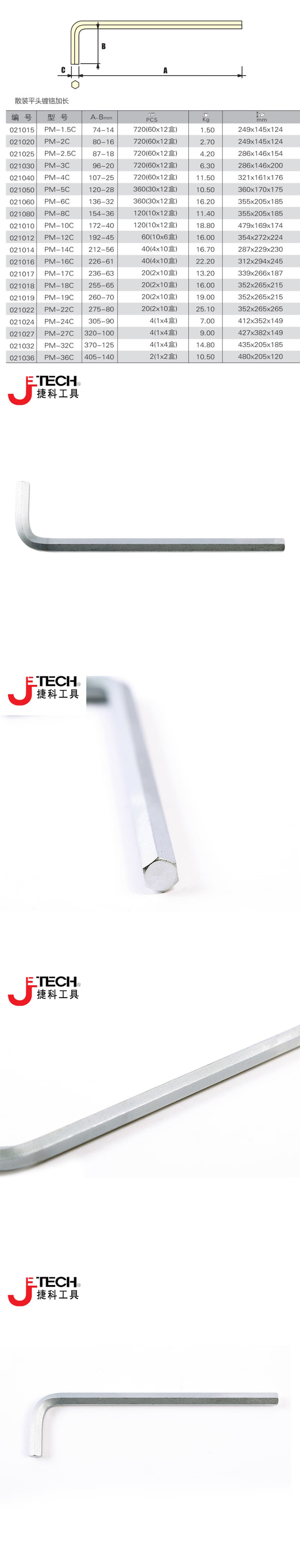 捷科(JETECH) PM-6C 平头镀铬加长内六角扳手 六角对边6mm(单位:把)