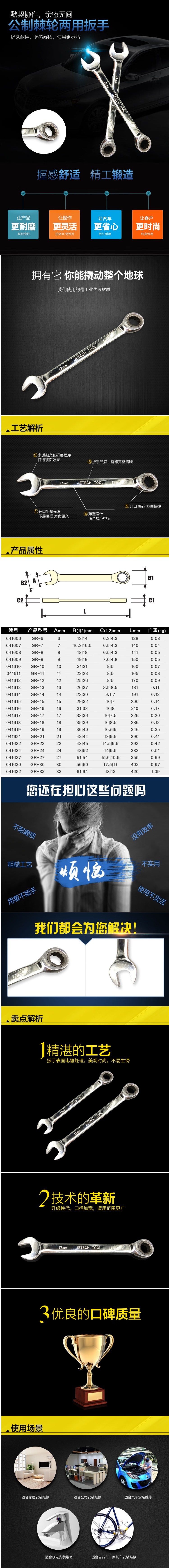 捷科(JETECH) GR-15 棘轮两用扳手 15mm(单位:把)