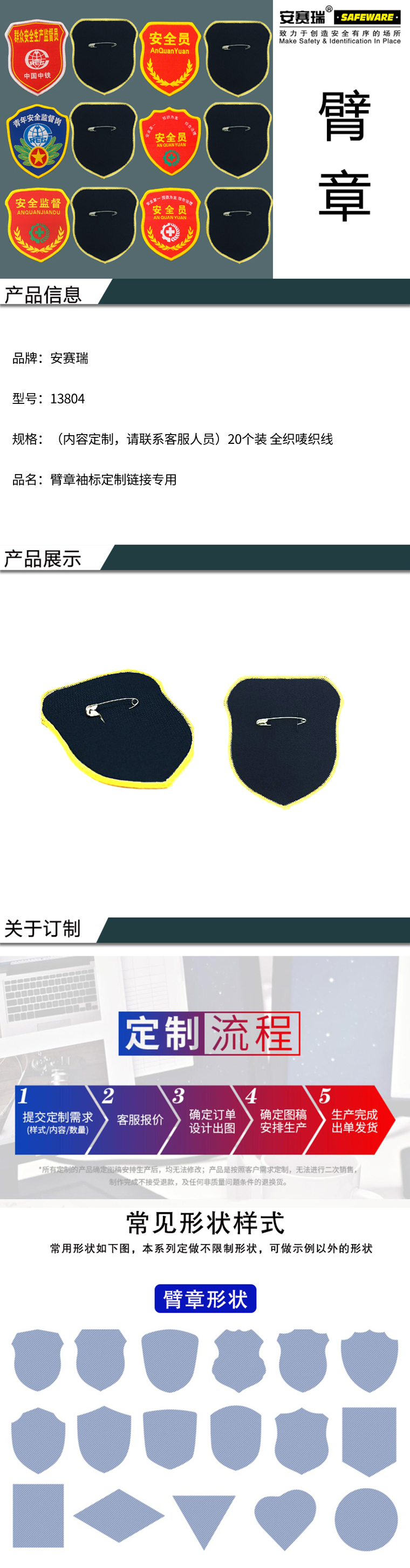 安赛瑞 13804 全织唛织线 臂章袖标定制 10个/包 (单位:包) 内容定制
