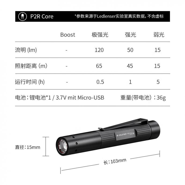 莱德雷神(LEDLENSER) P2R CORE 手电筒 便携手电USB充电款 108*103*15mm(单位:个)