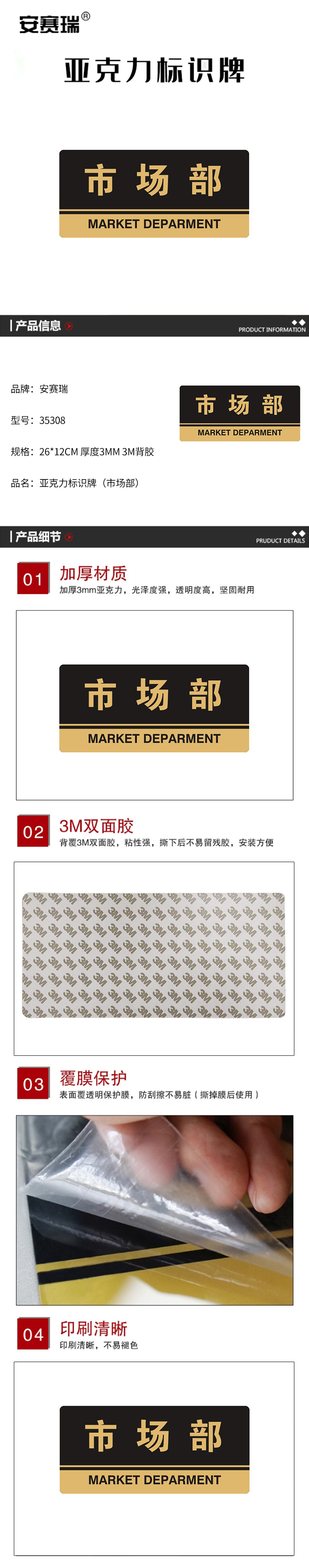 安赛瑞 35308 3M背胶 亚克力标识牌 26*12cm 厚度3mm (单位:张) 市场部