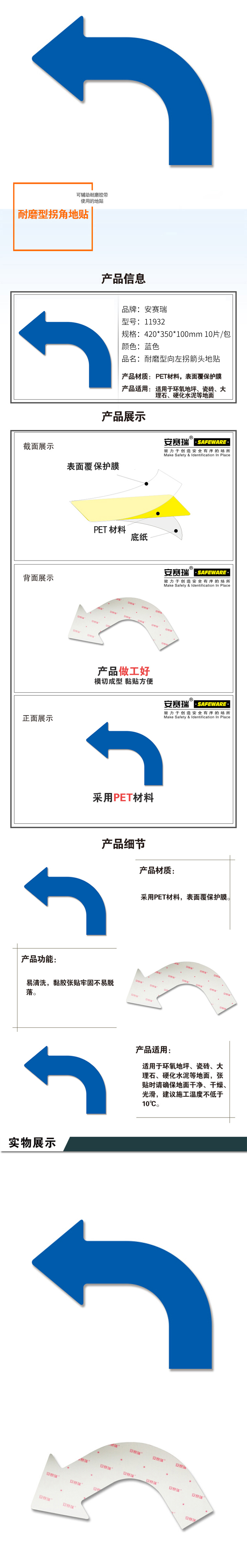 商品名称 耐磨型向左拐箭头地贴