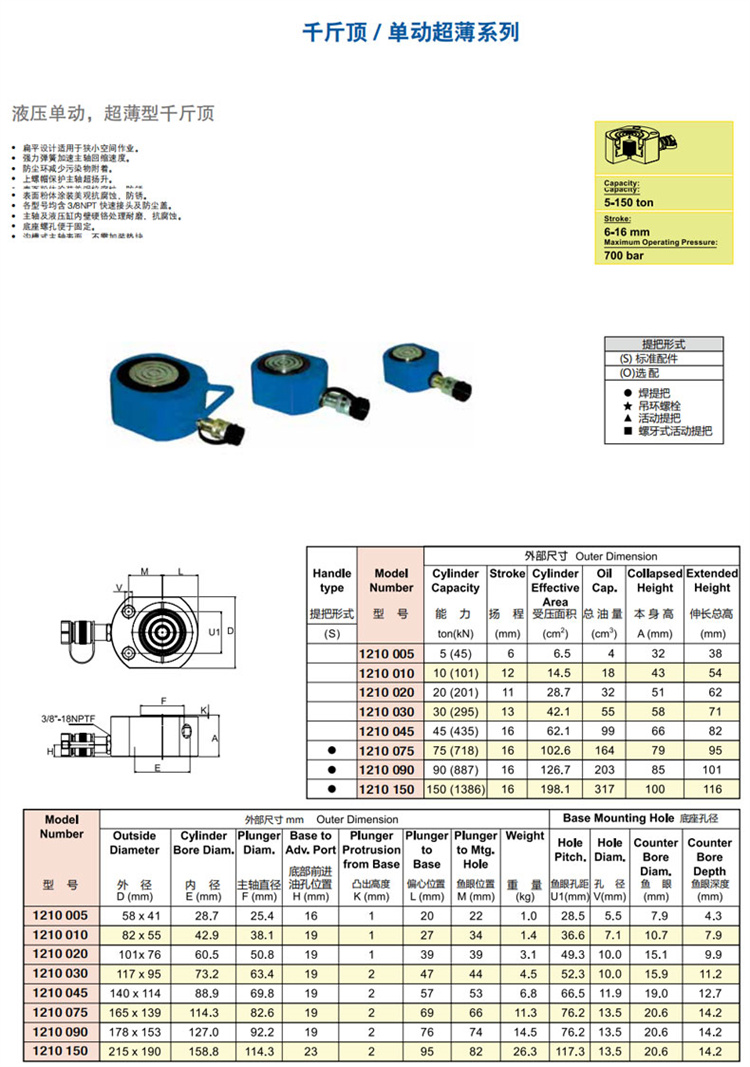 商品名称 单动超薄千斤顶