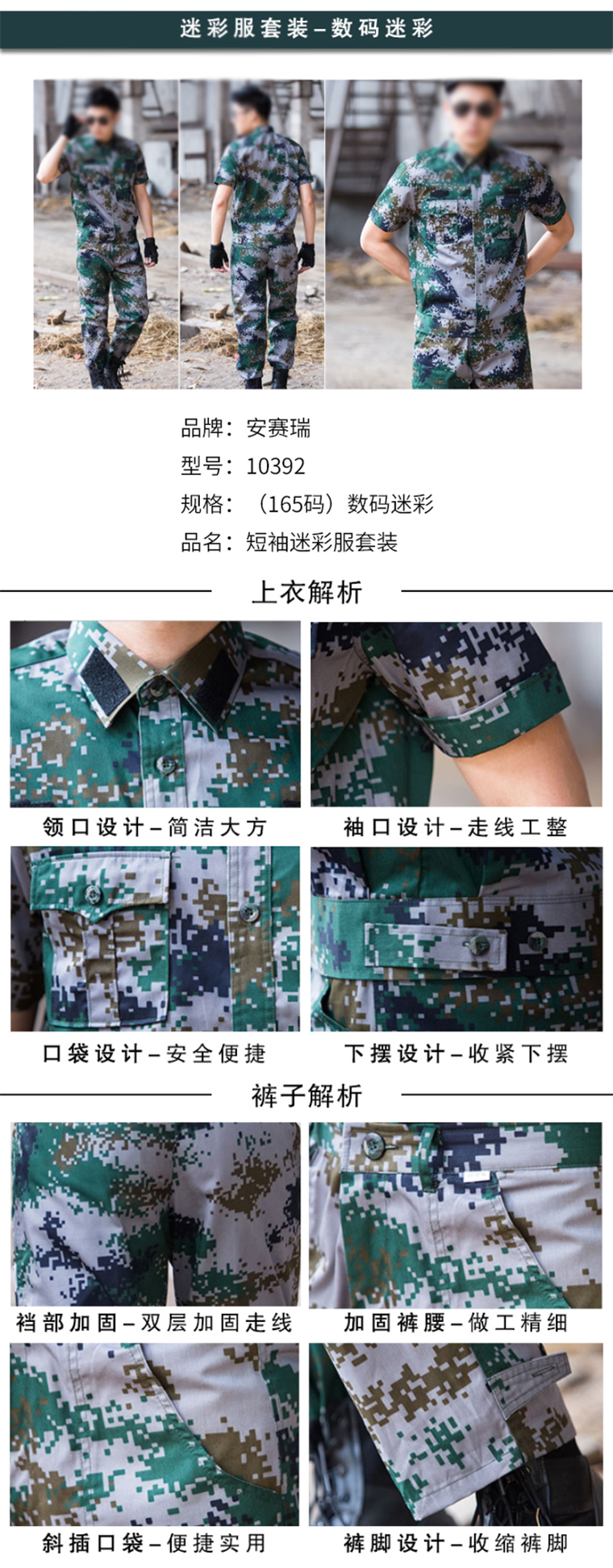 安赛瑞 10392 短袖迷彩服套装 165码 (单位:套) 数码迷彩