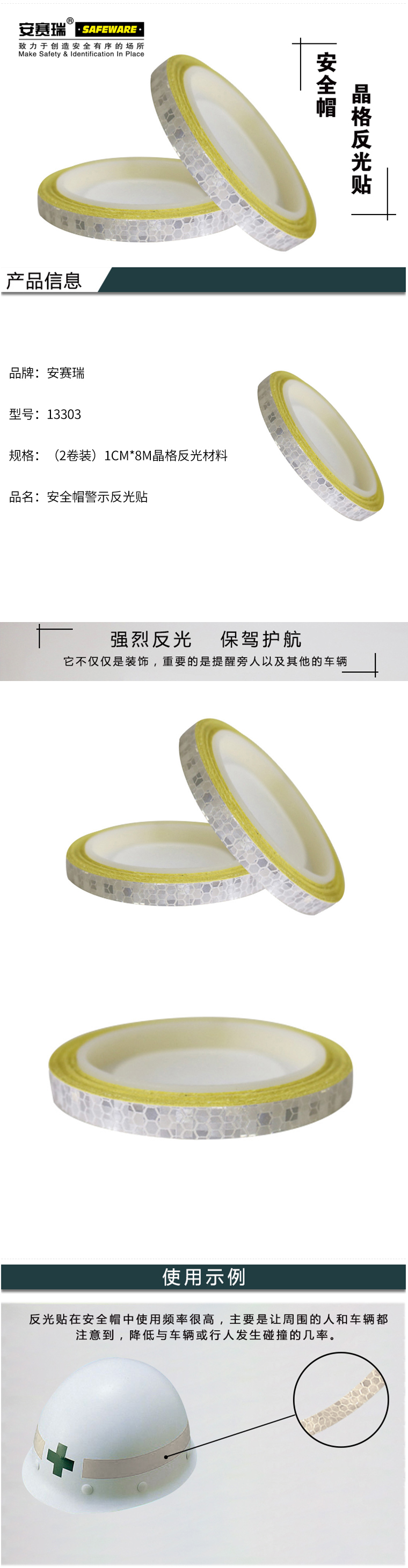 安赛瑞 13303 安全帽警示反光贴 1cm*8m 2卷/包 (单位:包) 晶格反光材料 白色