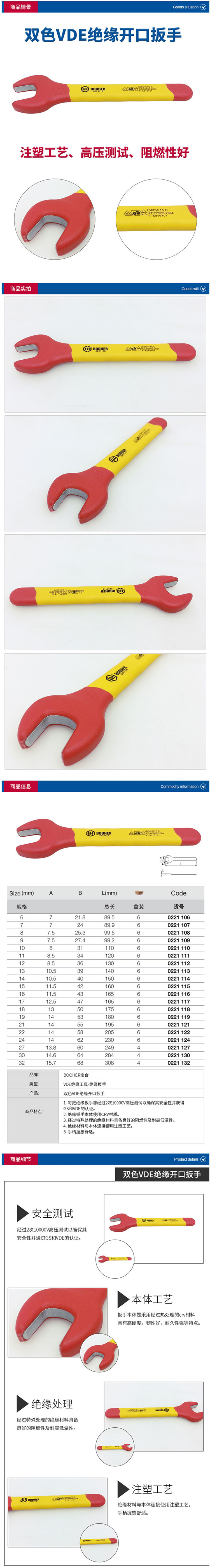 宝合(BOOHER) 0221121 双色绝缘开口扳手 21mm(单位:把)