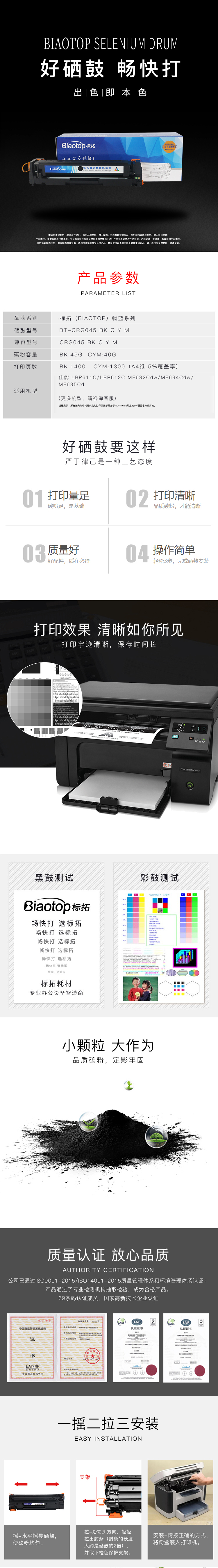 标拓(BIAOTOP) BT-CRG045 BK 硒鼓 畅蓝系列 1400页 (单位:个) 适用佳能LBP611C/LBP612C/MF632Cdw/MF634Cdw/MF635Cd打印机 黑色