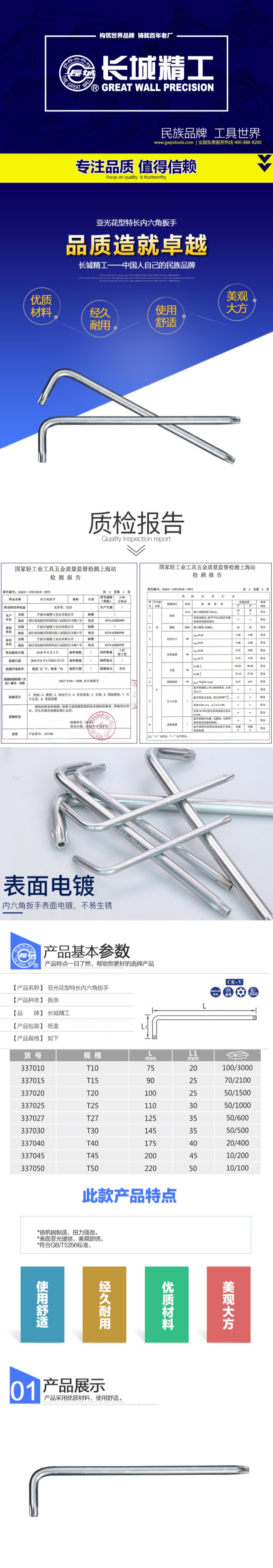 长城(THE GREAT WALL) 337027 亚光花型加长内六角扳手 T27(单位:把)