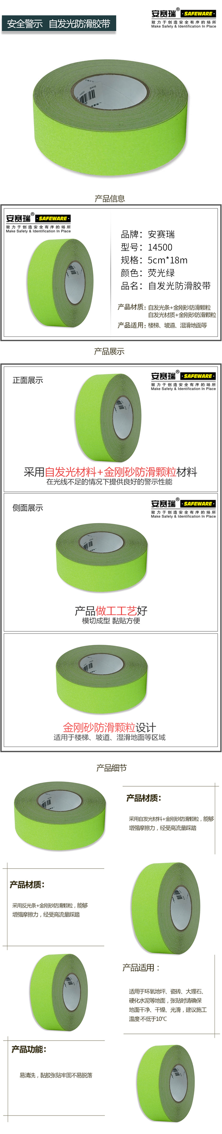 安赛瑞 14500 自发光防滑胶带 5cm*18m (单位:卷) 荧光绿
