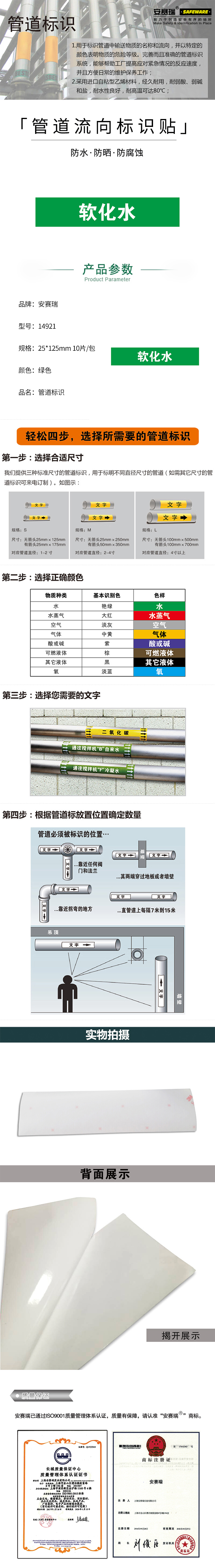安赛瑞 14921 管道标识 25*125mm 10片/包 (单位:包) 绿色