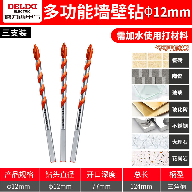 德力西 DLX-G5-6 墙壁钻头 12mm 3支 (单位:组) 两种款式随机发货