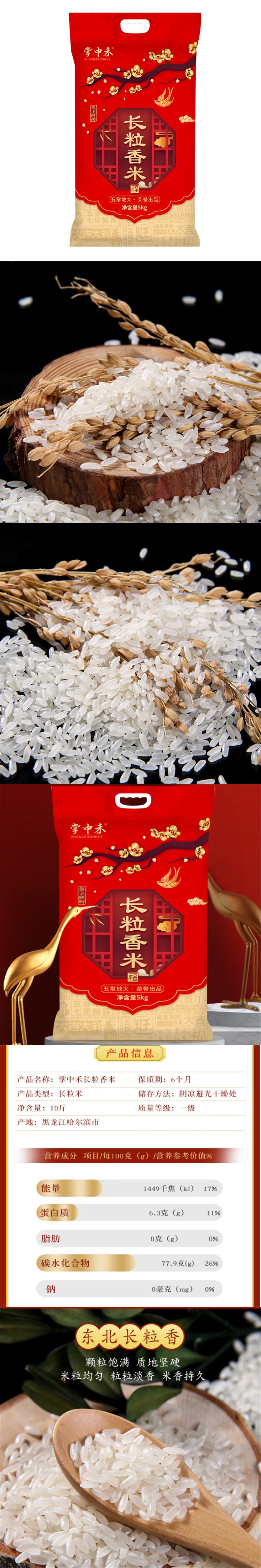 掌中禾(ZHANGZHONGHE) 长粒香米 黑龙江特产大米 喜上梅捎 5kg(单位:袋) 真空包装