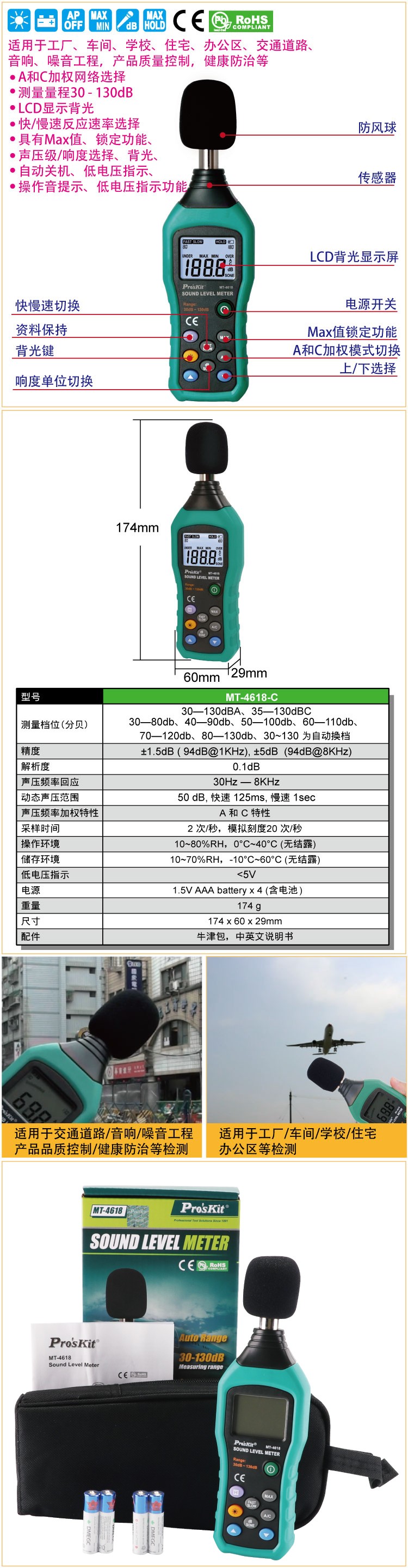 宝工(ProsKit) MT-4618-C 数位噪音计(单位:台) 绿色