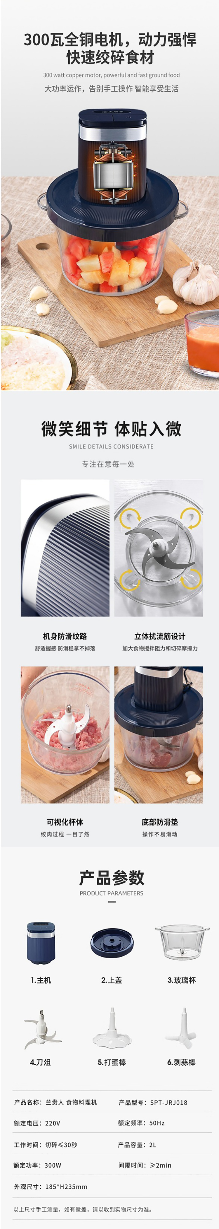 尚朋堂(SUNPENTOWN) SPT-JRJ018 食物料理机 2L(单位:台) 宝蓝色
