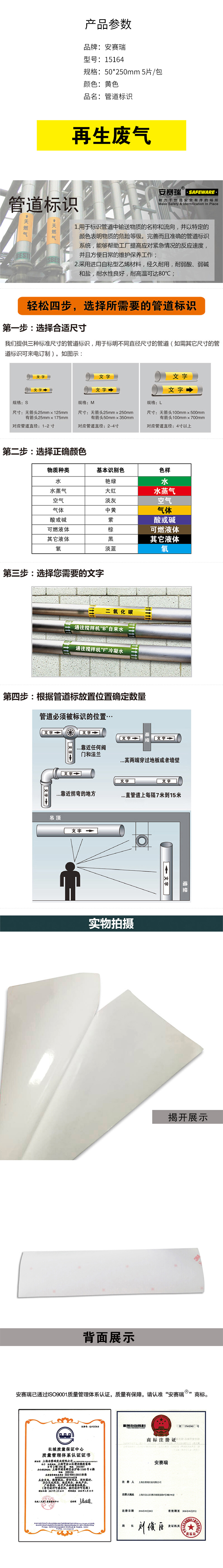 安赛瑞 15164 管道标识 50*250mm 5片/包 (单位:包) 黄色
