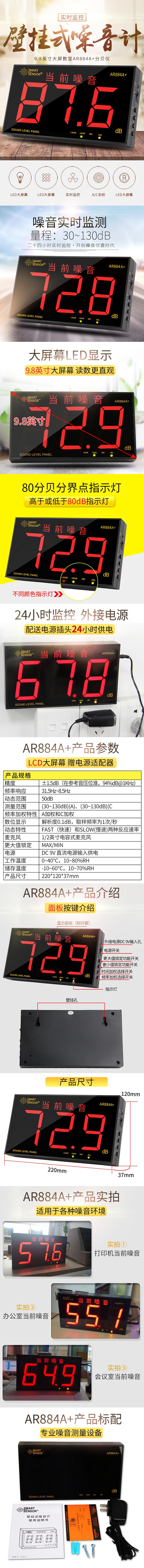 希玛 AR884A+ 壁挂式噪音测试仪 30~130dBA(单位:台)