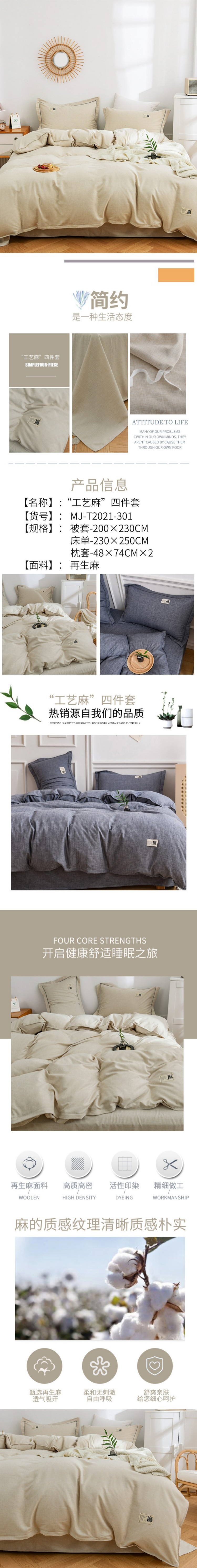 无印良品 MJ-T2021-301 工艺麻四件套 200*230cm(单位:套) 灰色