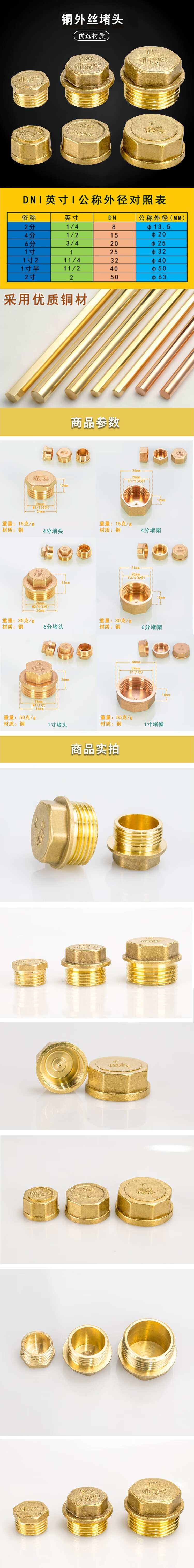 冰禹 BH-710 铜外丝堵头 1寸堵头 (单位:个)