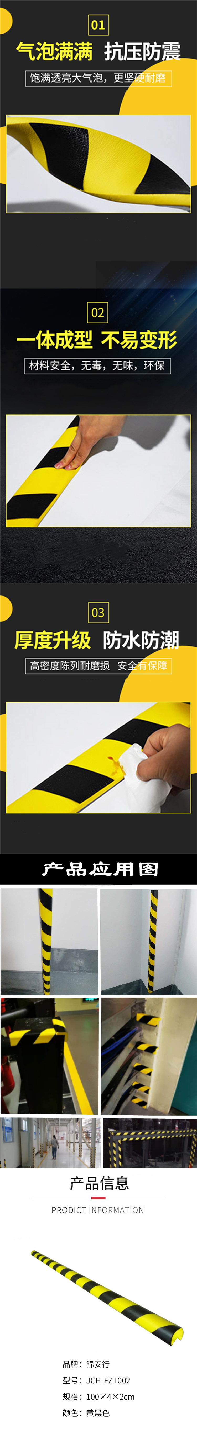 锦安行 JCH-FZT002 PU发泡防撞条 100×4×2cm (单位:个) 黄黑色
