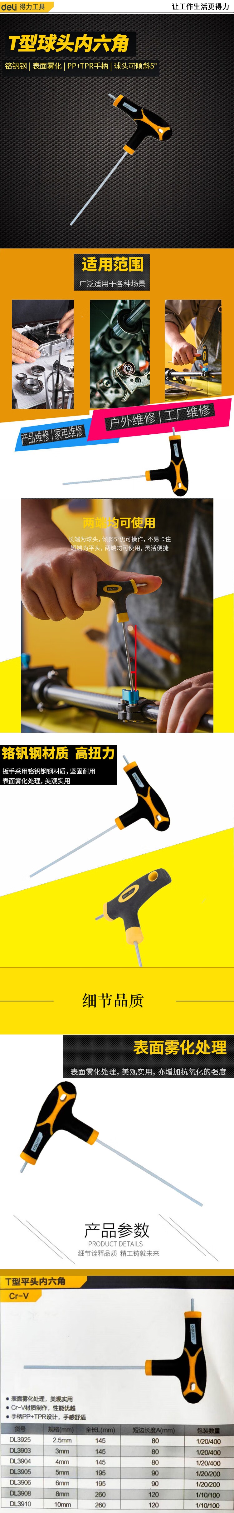 得力(deli) DL3925 平头T型内六角铬钒钢 2.5mm(单位:把)