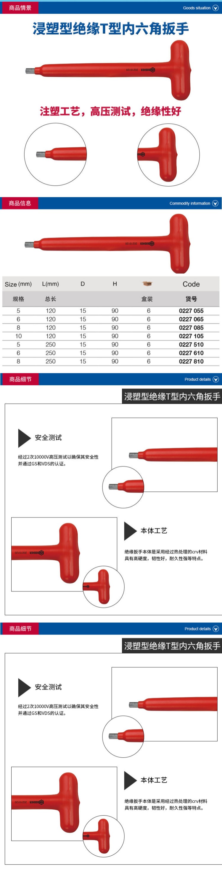 商品名称 浸塑型绝缘T型内六角扳手