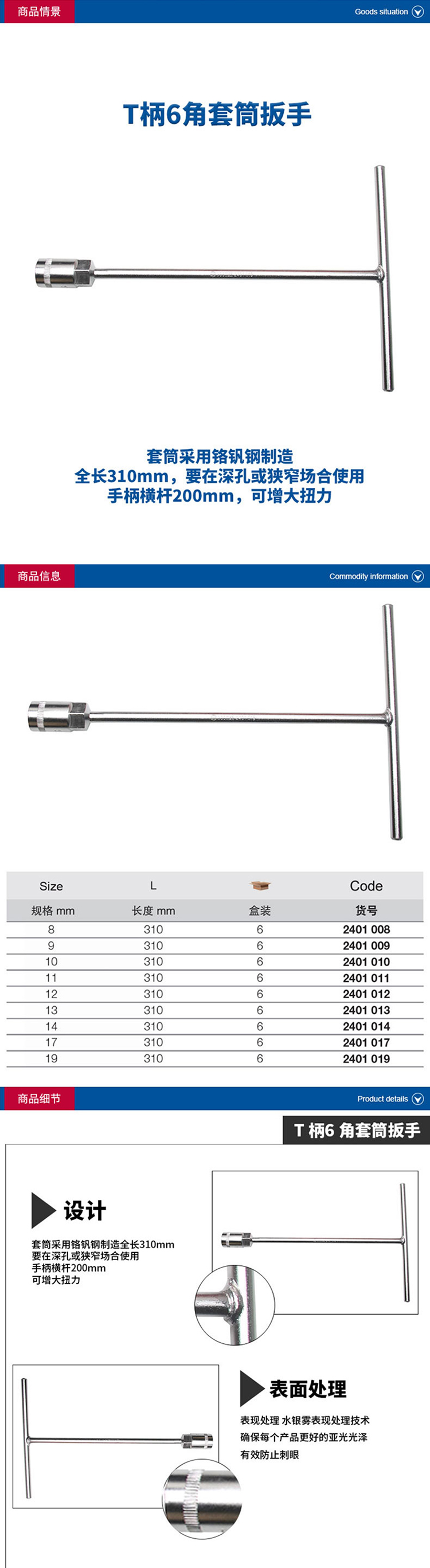 商品名称 T柄6角套筒扳手