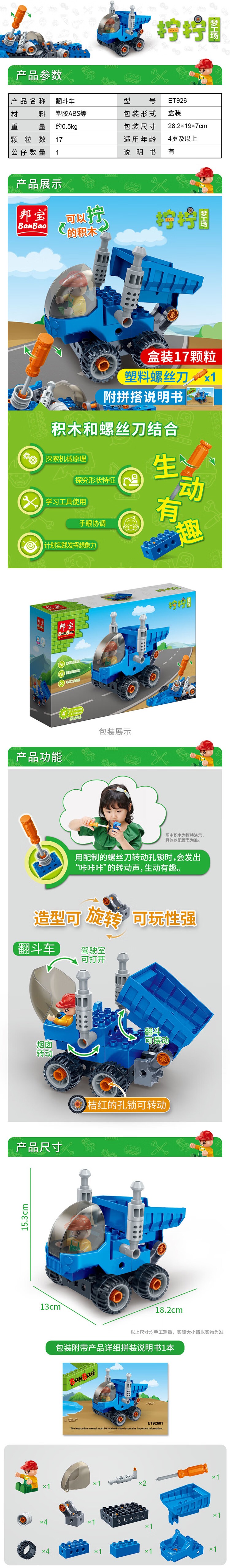 邦宝(BanBao) ET926 大颗粒拼装积木玩具 翻斗车 17颗粒(单位:个)