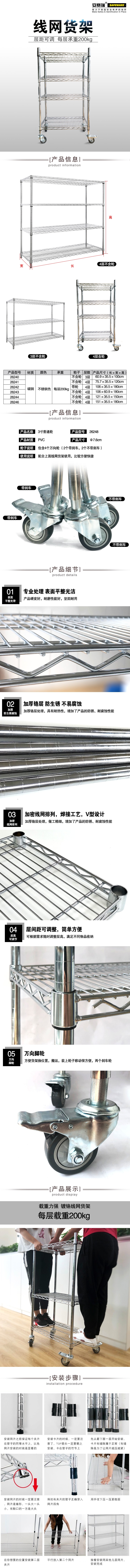 安赛瑞 26240 3层线网货架 60.9*35.5*100cm(单位:个) 不锈钢色