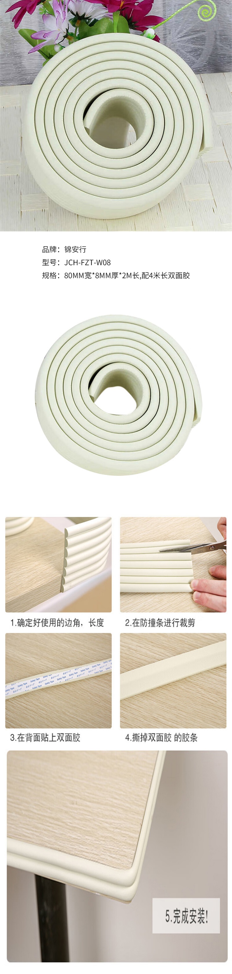 锦安行 JCH-FZT-W08 W型防撞条 80MM宽*8MM厚*2M长 配4米长双面胶 (单位:卷) 灰色