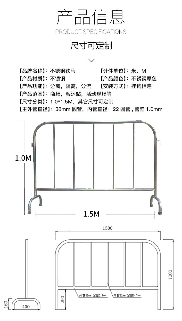 谋福 579 不锈钢铁马护栏 加横板 1.2米*1.5米 (单位:块)