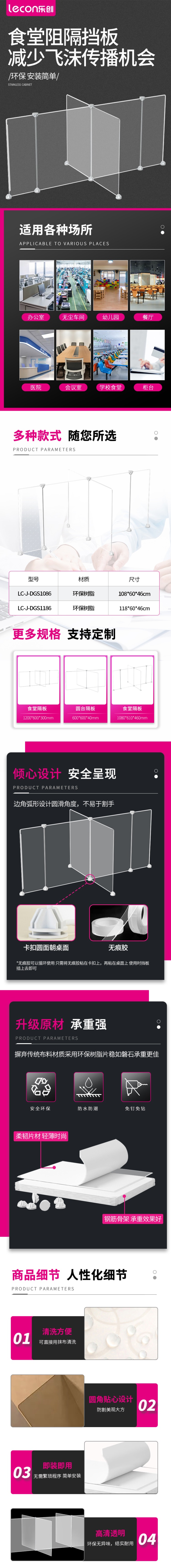 乐创(lecon) LC-J-DGS1086 商用餐桌隔离板 四人座短隔板 1080*600*460mm(单位:个)