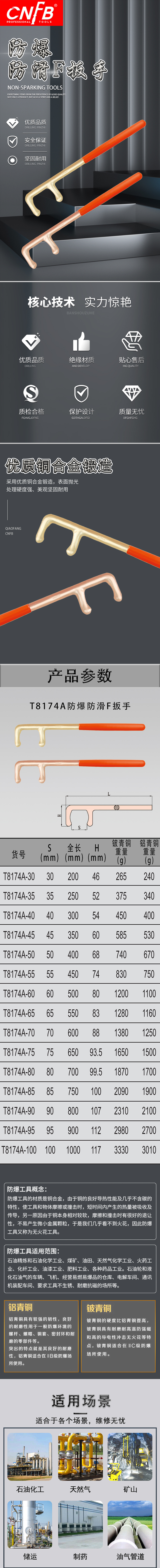 桥防(CNFB) T8174A-48 铍青铜防爆防滑F扳手 48*375mm(单位:个)