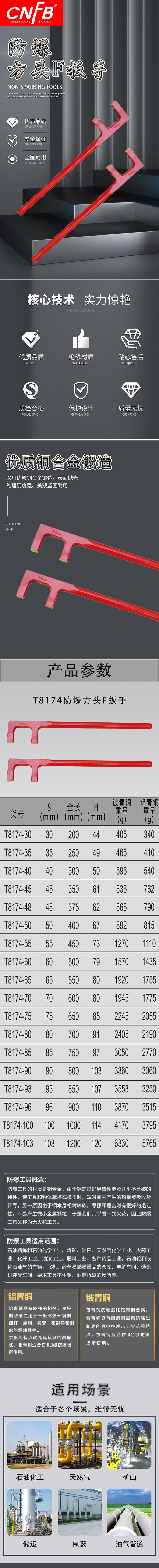 桥防(CNFB) T8174-48 铍青铜防爆方头F扳手 48*375mm(单位:个)