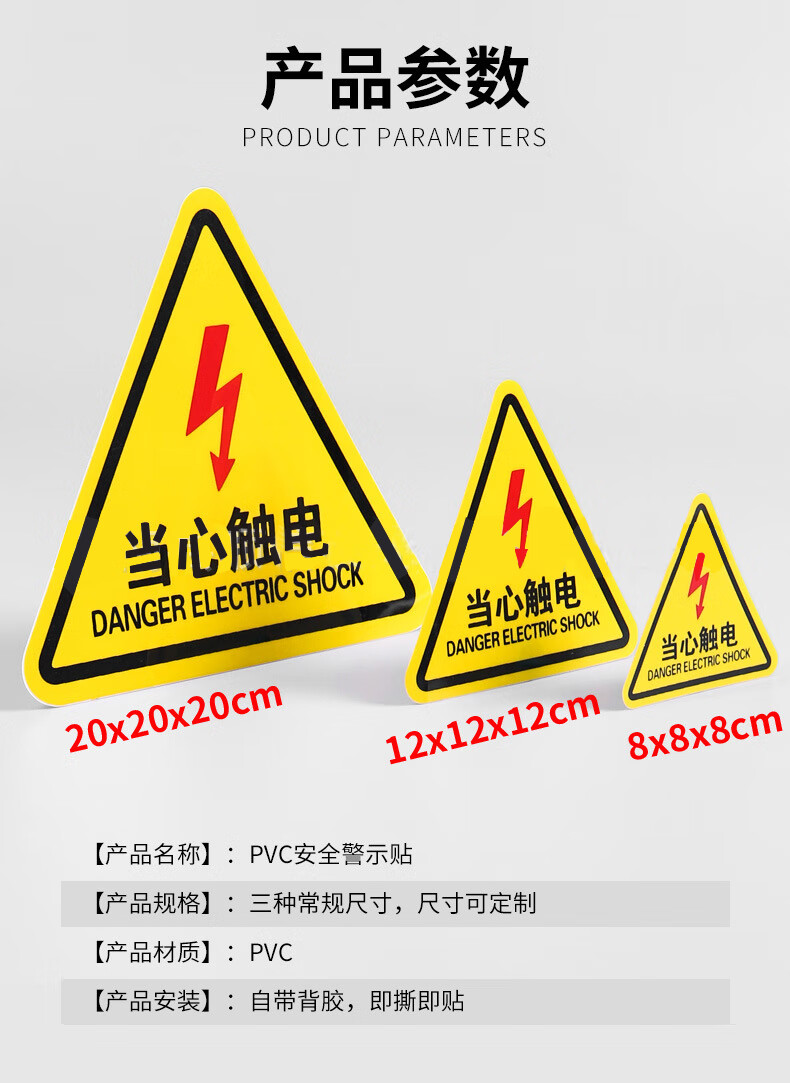 谋福 有电危险 PVC三角形安全标识牌 40*40CM (单位:块)