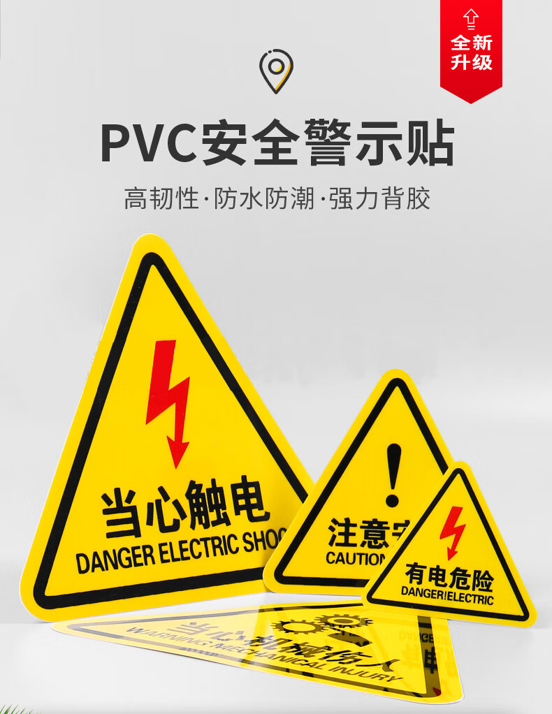 谋福 当心夹手 PVC三角形安全标识牌 5*5CM (单位:块)