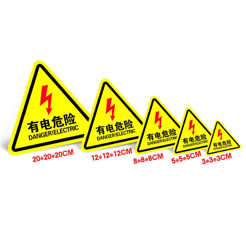 谋福 当心触电 PVC三角形安全标识牌 5*5CM (单位:块)