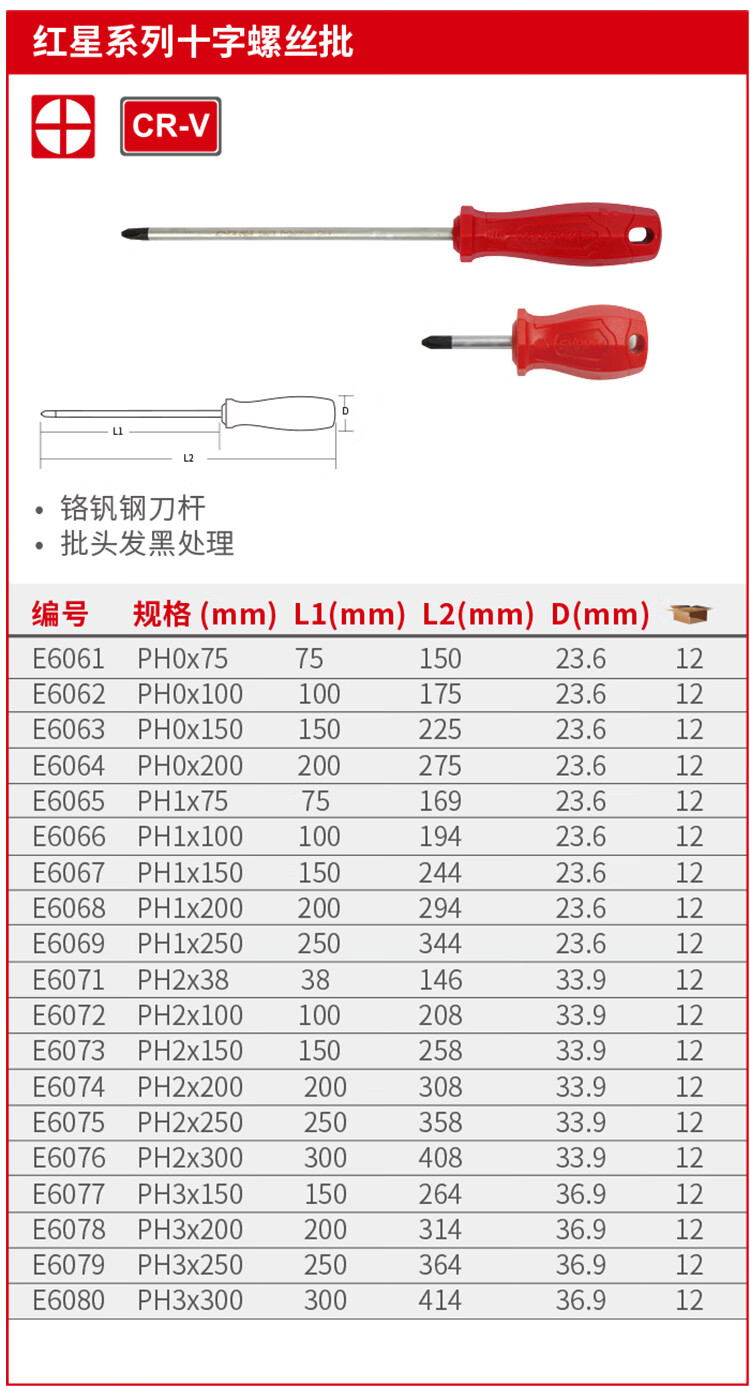 力易得(ENDURA) E6076 红星系列十字螺丝批 PH2x300mm(单位:把)