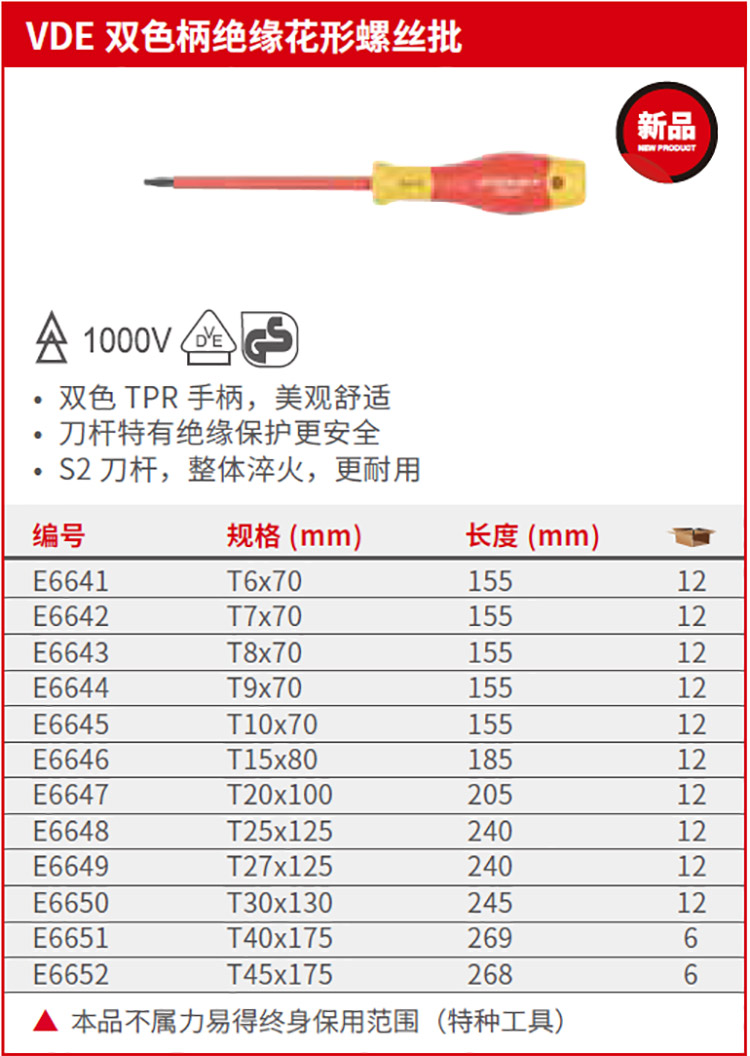 力易得(ENDURA) E6647 VDE双色柄绝缘花形螺丝批 T20(单位:把)