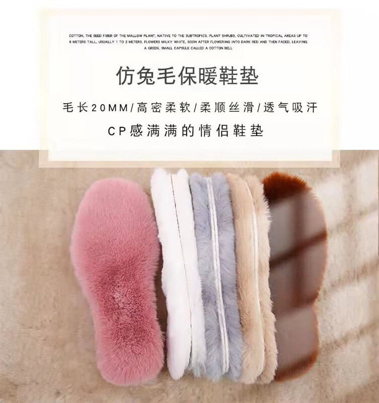 谋福 仿兔毛 保暖鞋垫 38码 3副装 (单位:包) 灰色
